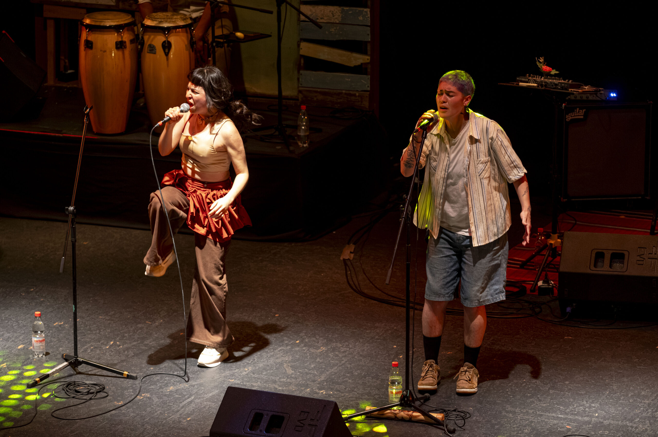 El comienzo cautivante de Joaquín hacía prever una noche en alto de comienzo a fin, puesto que luego vino la presentación a dúo de dos de las nuevas voces femeninas que están arrasando en el puerto, Alma Pájara y Zencilla. Ambas por separado han tenido un inicio meteórico en los escenarios. Alma Pájara lanzó su carrera hace un poco más de un año y ha podido conectarse con un público joven como ella, interpretando sus sentires, aventuras y desventuras. Zencilla, en tanto, proveniente de la cultura hip hop, bajó desde Puertas Negras en Playa Ancha para tomárselo todo con una propuesta honesta y de alta vinculación con el público lo que se demostró aquel miércoles cuando todavía no eran las 8 de la noche. Ambas recordaron como desde su participación en el encuentro Detonadas que se realizó en Centex quedó ese vínculo “y nos llamaron para participar de esta celebración luego y para nosotras fue un tremendo orgullo”, además Alma Pájara dijo que “se valora mucho lo que Centex hace sobre todo en estos tiempos de individualismo” y “rescatar la cultura popular y no de elite vale mucho” dijo Zencilla unos minutos antes del show que hizo explotar un teatro lleno de platea baja a la galería.