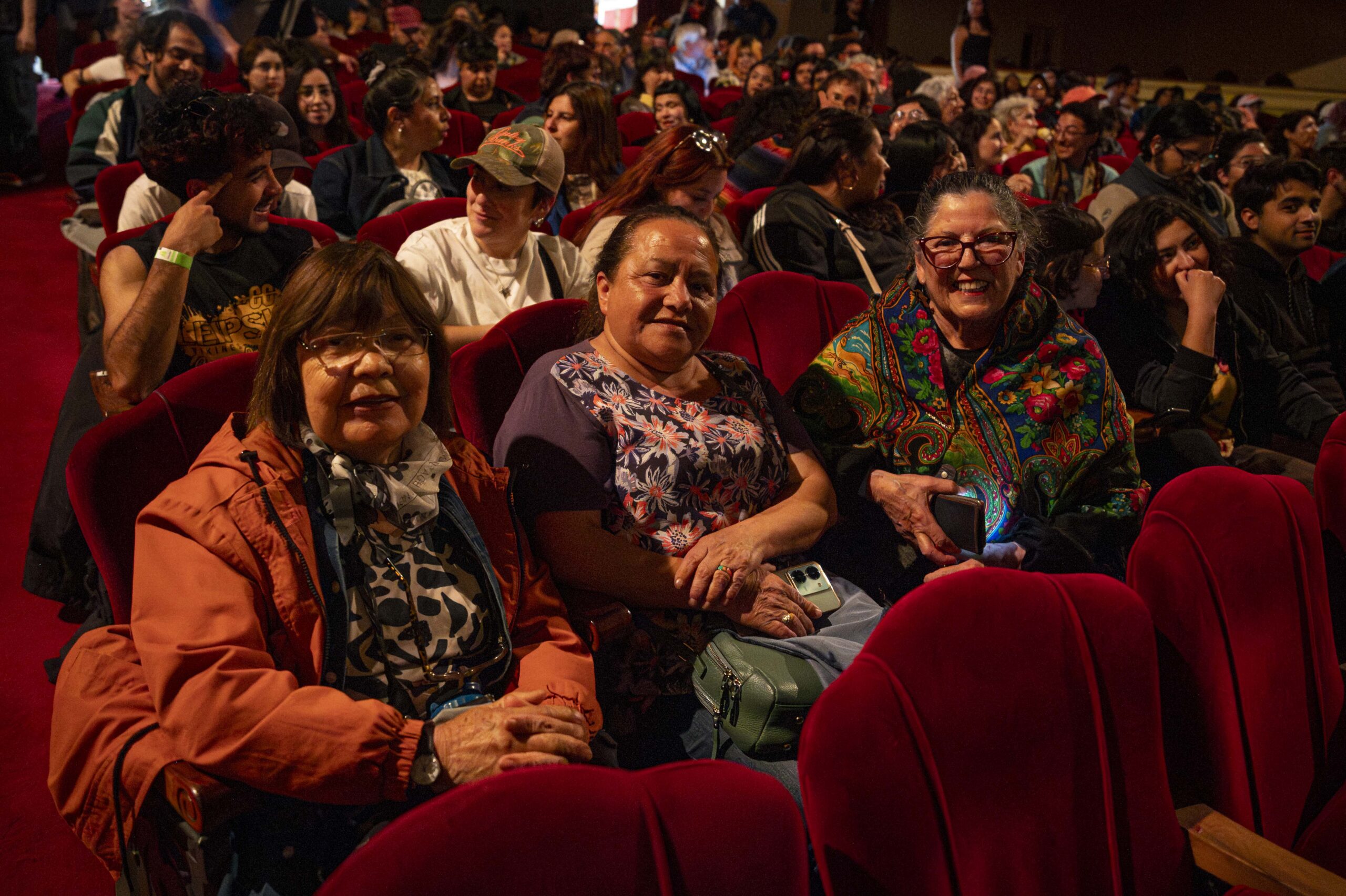 Luego de cantar, bailar y pedir otra, vino un momento de recogimiento en el reconocimiento a personas que estuvieron muy vinculadas a Centex y a la ciudad y que hoy ya no están. Fue la cantora local Pascuala Ilabaca quien hizo un homenaje a la comunidad interestelar, mientras se proyectaban imágenes en las amplias paredes del teatro con esos rostros y personas como Galia y Romina, trabajadoras del Ministerio que murieron en el trágico accidente de a avioneta donde perdió la vida también Felipe Camiroaga, entre otros. Fue un paso breve de la gran Pascuala, nominada a Mejor Intérprete en los últimos premios Pulsar, pero no por eso menos intenso y emotivo, quién valoró la invitación y su vinculación personal con el espacio “yo tengo 40 años y desde mis 20 que conozco este lugar y Centex es muy bonito y acogedor, de hecho su subterráneo debe ser el más cálido y bello de la ciudad”.