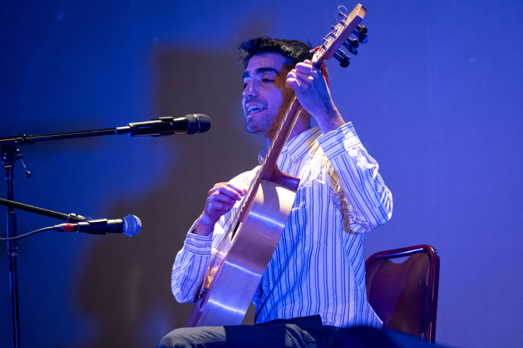 En este tenor partió la apertura de la primera jornada con la intervención del artista proveniente de la región de Ñuble Joaquín González que con tan sólo 25 años es parte de una joven generación interesada en el rescate del folclor y de la cultura popular. Joaquín interpretó un hermoso pregón de bienvenida y saludo y, entre canción y canción, se tomaba un tiempo necesario para explicar, contar o contextualizar la rica tradición de canto campesino que estaba ofrendando. El público, lejos de distraerse, conectó con la energía de este joven cantor. “Traje una modalidad del sur, presenté un esquinazo: una tonada de saludo a la usanza de la tradición rural campesina de la zona del Ñuble, aprendida y heredada de las cantoras de mi región” subrayó Joaquín González.